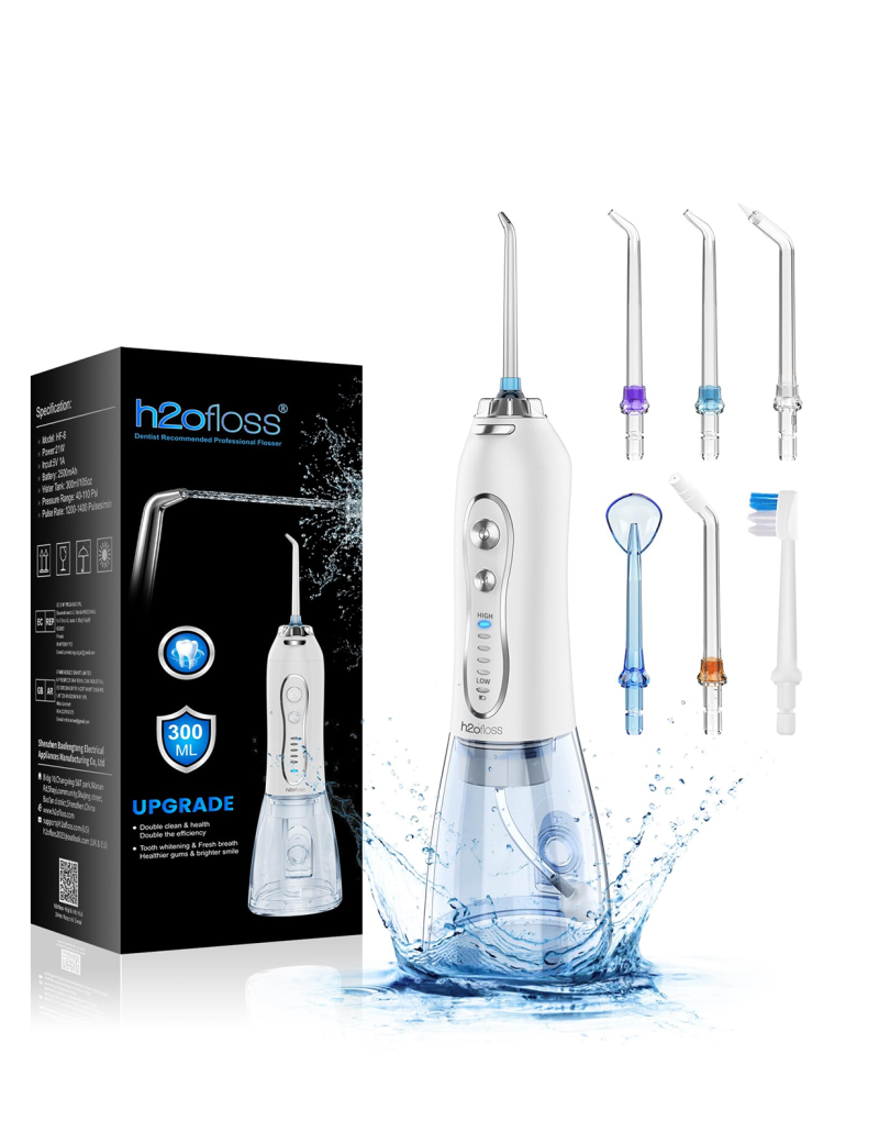 دستگاه واترجت دندان H2ofloss مدل HF-6 یک ابزار بهداشتی خانگی است که با پاشیدن آب با فشار به دندانها و لثهها، به پاکسازی جرمها و باکتریهای پنهان در فواصل بین دندانها و اطراف لثهها کمک میکند. این دستگاه بهویژه برای افرادی که دارای ارتودنسی، ایمپلنت، دندان مصنوعی یا پروتز هستند، مناسب است و میتواند جایگزین مناسبی برای نخ دندان باشد.